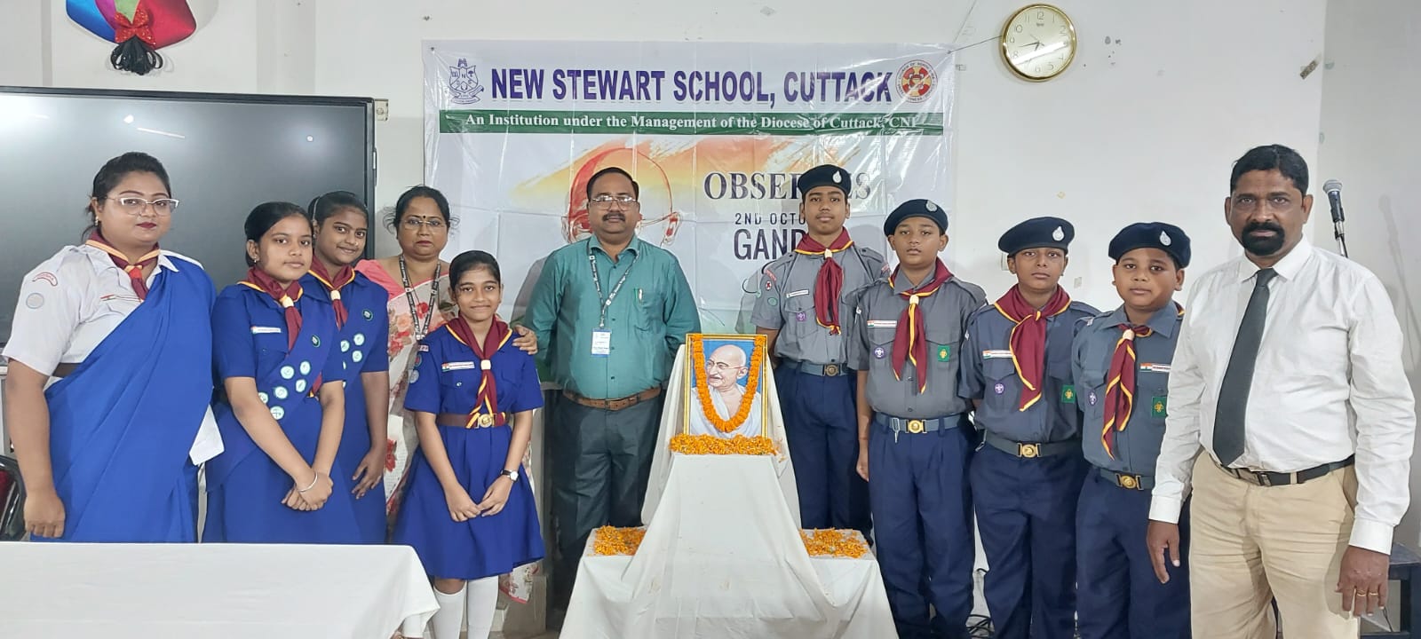 New Stewart School observed Gandhi Jayanti with enthusiasm and reverence. The day began with a special prayer led by our principal, Rev. Mojesh Mohanty sir. Students and teachers paid tribute to Mahatma Gandhi through songs, poems, and speeches. A cleanliness drive was also organized to reflect Gandhiji’s ideals of cleanliness and sanitation.